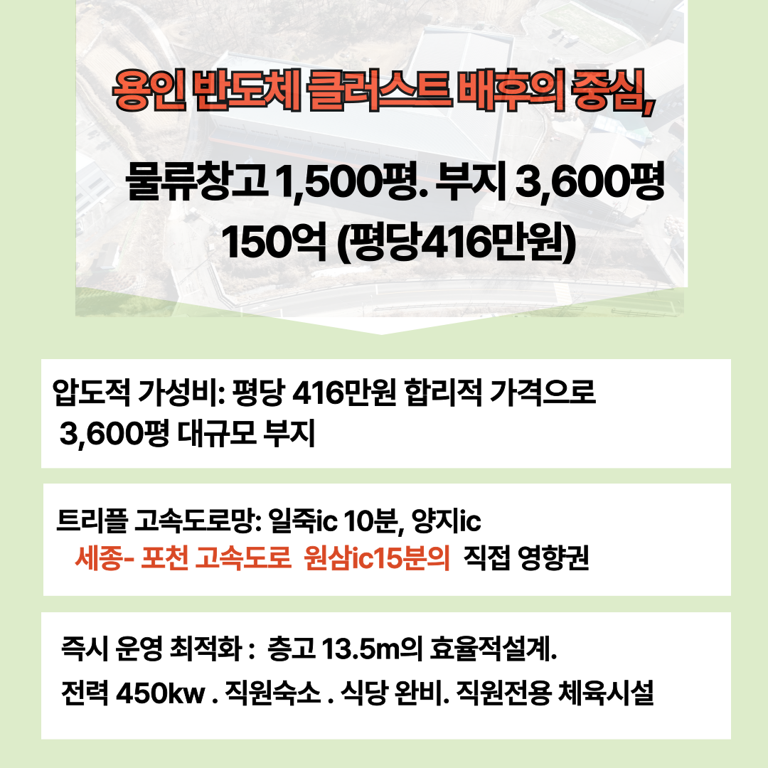 ◐ 즉시 운영 가능: 층고 13.5m, 전력 450kw, 기숙사/식당 완비된 신축급 스펙